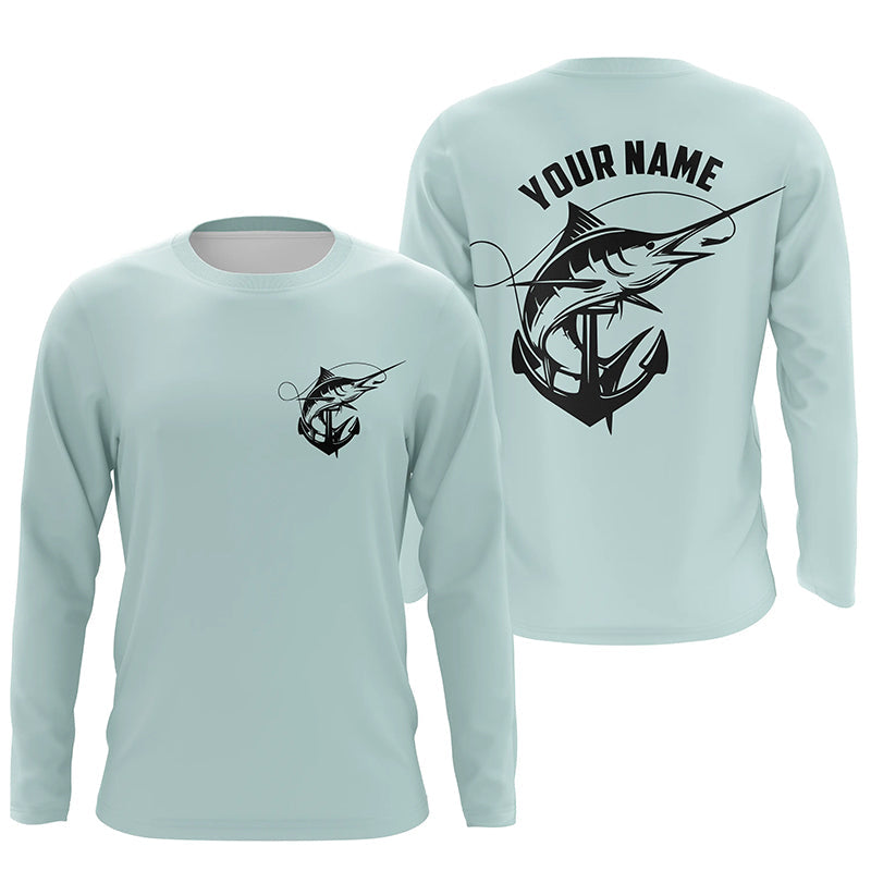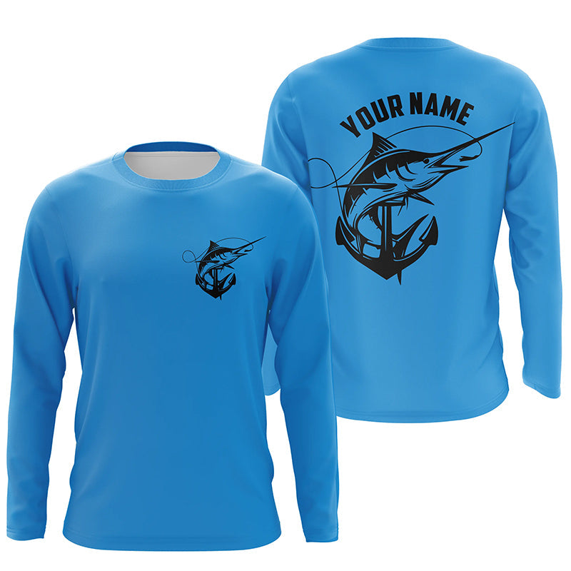 Marlin Saltwater Fishing Shirts, Personalized Marlin Long Sleeve Anchor Fishing Shirts IPHW3761